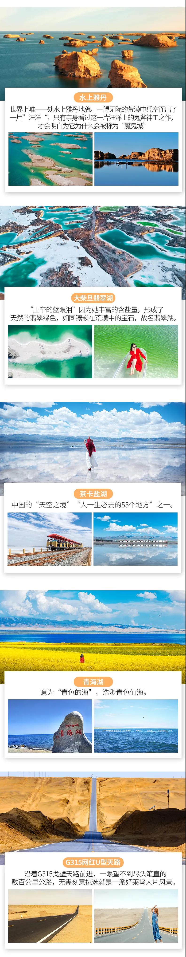 艾肯泉+水上雅丹+茶卡鹽湖+大柴旦翡翠湖+茫崖翡翠湖+東臺(tái)吉乃爾湖+西臺(tái)雙色湖+青海湖+G315U型公路