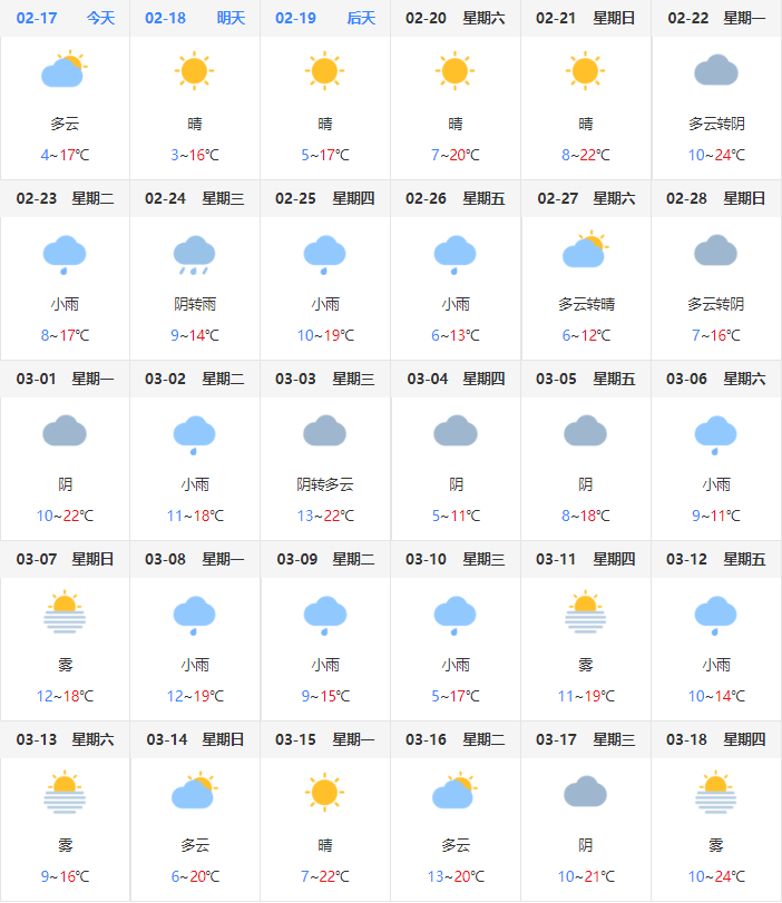 根據(jù)中央氣象預(yù)報(bào)顯示,2月17日-3月18日,婺源氣溫逐漸升高,晴天多云為主,溫度保持在9-18℃左右,此種溫度能適當(dāng)加速油菜花的生長(zhǎng)。正適合踏春賞花!