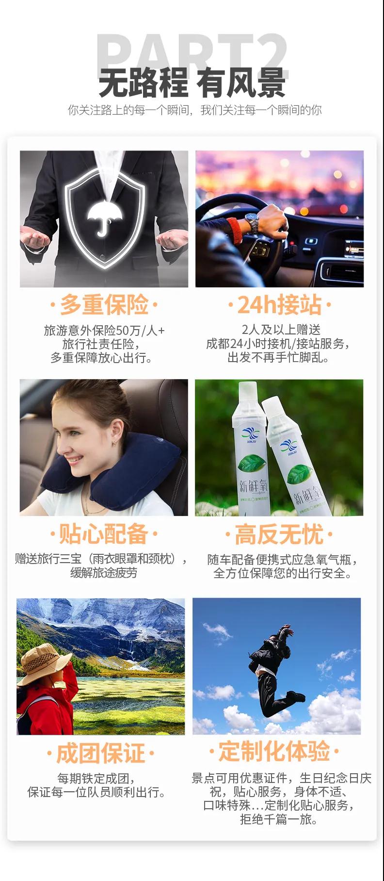 2、由于川西地區(qū)路況較差,山道狹窄,有可能因?yàn)槎萝嚩l(fā)生延誤,請(qǐng)大家盡量預(yù)定第二天返程的航班或車次。