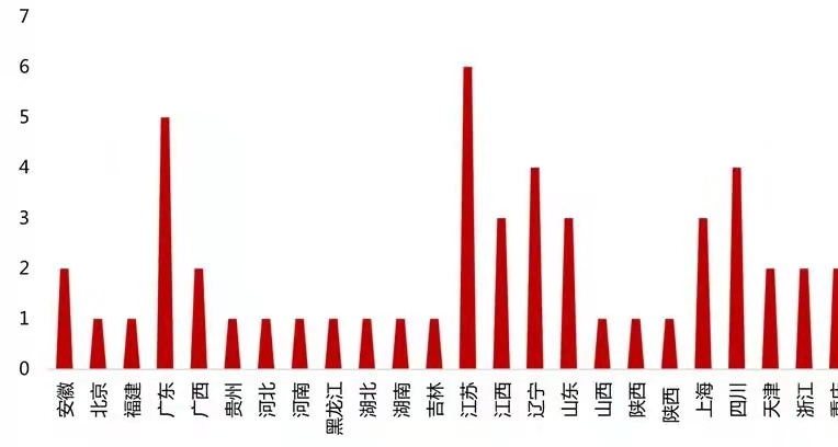 從空間分布來看,紅色文化型景區(qū)分布較為廣泛,東部、中部、西部都很豐富。由于在不同歷史發(fā)展階段,革命斗爭活動重心地區(qū)各異,同時,伴隨歷史及革命進(jìn)程所涌現(xiàn)的領(lǐng)袖和名人,其誕生地也表現(xiàn)出區(qū)域性特點(diǎn),所以,紅色文化型景區(qū)具有較明顯的地域集聚性特征。數(shù)據(jù)顯示,華東地區(qū)上榜數(shù)量最多,華北、華南、華中、西南、東北等地亦多有分布。