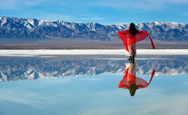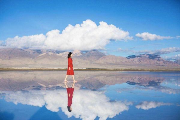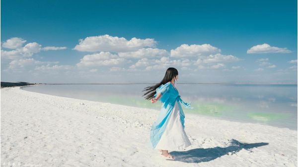 秋冬時的鹽湖凍結(jié)成冰,白色的湖面和藍(lán)色的天空時畫面的主要色彩;春夏之季,湖水恢復(fù)本來的淡藍(lán)色面貌。穿衣搭配建議: