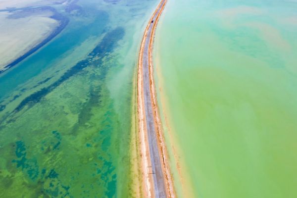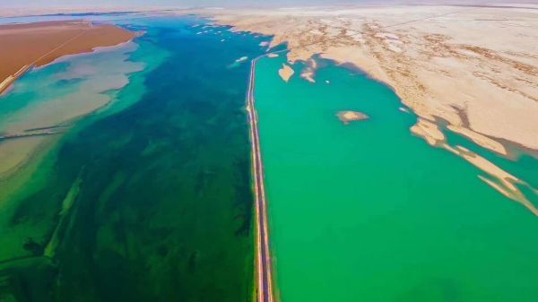 西臺吉乃爾湖俗稱“雙色湖”,此湖被G315國道從中穿過,將湖面分為兩半,一側湖水因富含銅離子而呈現(xiàn)淺綠色,一側湖水因含有硫酸亞鎂而呈深藍色,奇特又漂亮,被戲稱為“鴛鴦火鍋”。