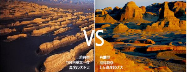 這里我先給大家po上兩個(gè)名詞解釋。雅丹—維吾爾語(yǔ)譯名,指風(fēng)力吹蝕未固結(jié)、較松散的河流和湖泊沉積物而形成的一些“陡峭的土丘”,在干旱區(qū)分布廣泛;丹霞—是經(jīng)由地殼抬升后,由流水、風(fēng)化和重力等作用塑造而成,“頂平、身陡、麓緩”,巖性堅(jiān)硬,年代遠(yuǎn)比雅丹古老。