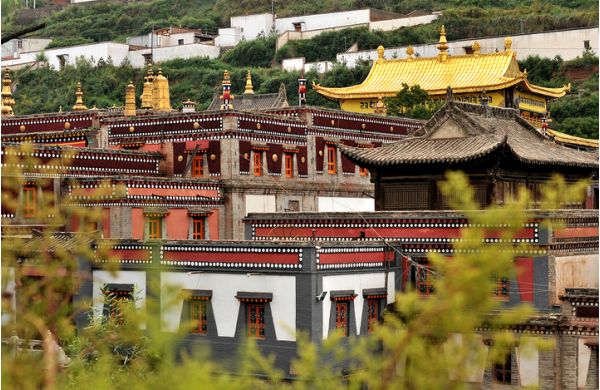 塔爾寺以大金瓦寺為中心,主要建筑依山傍塬,有大金瓦寺、大經(jīng)堂、彌勒殿、九間殿、花寺、小金瓦寺、居巴扎倉、丁科扎倉、曼巴扎倉、大拉浪、大廚房、如意寶塔等9300余間(座),組成一龐大的藏漢結合的建筑群,占地面積45萬平方米。