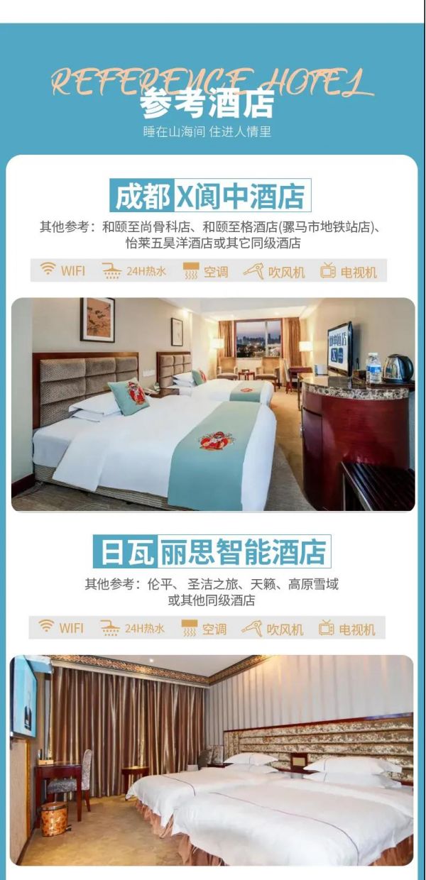 l 成都:X閬中酒店、和頤至尚骨科店、和頤至格酒店(騾馬市地鐵站店)、怡萊五昊洋酒店或其它同級酒店
