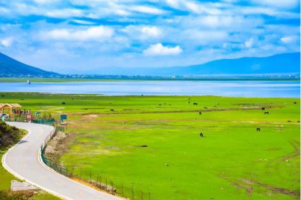 在香格里拉市6公里開外有這樣一個地方,地勢平坦、三面環(huán)山, 那曲河、奶子河等十余條河彎彎曲曲,流經(jīng)草原注入這里;在夏末秋初豐水期時大量積水形成了大面積湖面,這便是【納帕海】,而在枯水期湖面縮小時這里就變成大片的沼澤草甸,成為“迪慶香格里拉最大最美的草原”——【依拉草原】。這水草豐茂的草原如內(nèi)蒙古大草原一般遼闊,有“香格里拉后花園”“大西南的塞北風(fēng)光”之稱,一望無際的草原,星羅棋布的牛羊馬,穿梭期間的著藏裝的牧民,純粹澈靜的湖泊,蔚藍(lán)高曠的藍(lán)天,還有滿地叫不上名的野花匯成一片海,很容易就讓人醉進(jìn)去,與牛馬同呼吸,共天地一顏色。感興趣的小伙伴還可以騎馬馳騁草場之上,不過務(wù)必要注意自身安全哦。