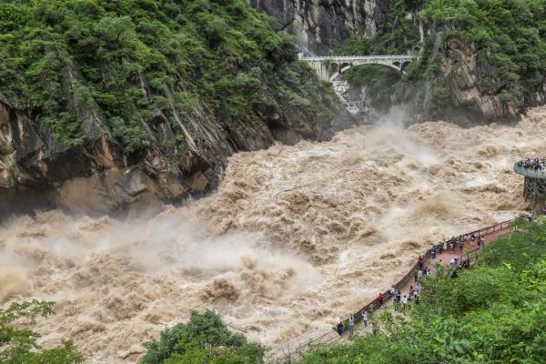 金沙江經(jīng)長江第一灣之后忽然掉頭北上,從哈巴雪山和玉龍雪山之間的夾縫中硬擠過去,原本平靜祥和的江水頓時變得怒不可遏,形成了世界上最壯觀的大峽谷,而峽谷中最窄的地方就是我們今早的目的地——聞名天下的【虎跳峽】 。我們的團(tuán)期覆蓋虎跳峽最壯美的汛期,震撼的視覺沖擊能瞬時將你驚得無言,狂怒的江水拍打著崢嶸亂石,激起沖天水柱和浪花, 浪與岸、浪與岸之間碰撞發(fā)出雷霆般的轟鳴,空氣中也滿帶著泥沙味道。在大自然的鬼斧神工面前,人是如此渺小和微不足道。