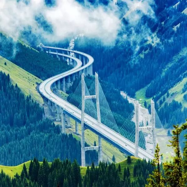 果子溝大橋在設(shè)計施工中秉承"以最小限度破壞、最大限度的恢復(fù)"的環(huán)保理念,在克服地質(zhì)災(zāi)害頻發(fā)影響通行的同時,邊施工邊進行環(huán)保恢復(fù)工作。建成的大橋橋身與果子溝的美景渾然一體,將為果子溝國家級風(fēng)景區(qū)再添一道美麗風(fēng)景線。