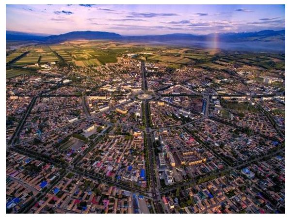 新疆的特克斯縣因八卦布局而聞名。有關(guān)部門1996年取消道路上的紅綠燈,八卦城由此成為一座沒有紅綠燈的城市。該城始建于1937年,由當(dāng)時的伊犁屯墾使兼警備司令邱宗浚親自查勘設(shè)計。