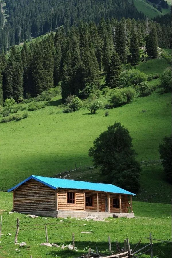 瓊庫什臺村幾乎所有的民房都是木建筑,有的房子是由整根原木搭的,有的房子是將原木從中間一分為二,通過掏、榫、拱等各種工藝搭起來的。在棚圈部分甚至連樹皮都沒有剝離。建筑的平面、立面和細部處理、建筑技術(shù)和施工技藝等保持著建筑文化的印跡,歷史信息豐富,具有較強的原真性,是至今伊犁河谷保存完好的一個木構(gòu)建筑群。這里夏季多雨、潮濕,瓊庫什臺村的先民根據(jù)當(dāng)?shù)氐淖匀画h(huán)境和生存需要,就地取材,用木材建房,形成了這個獨具特色的村落。因松、杉樹木質(zhì)堅硬,經(jīng)久耐用,從而使當(dāng)?shù)氐哪緲?gòu)建筑沒有變形,使用壽命長。加之地處大山深處,交通不便,各家各戶對自己的房屋用心保護,故村落中大量的民居保存完好,部分民居已有100多年的歷史,具有豐富和完整的歷史文化內(nèi)涵。從瓊庫什臺村以木構(gòu)建筑作為哈薩克族牧民的居住建筑看,這無疑是牧民們從流動性居住方式向永久性居住方式的演變。還保留著很多上世紀(jì)五、六十年代具有哈薩克族游牧民族特色的木屋。