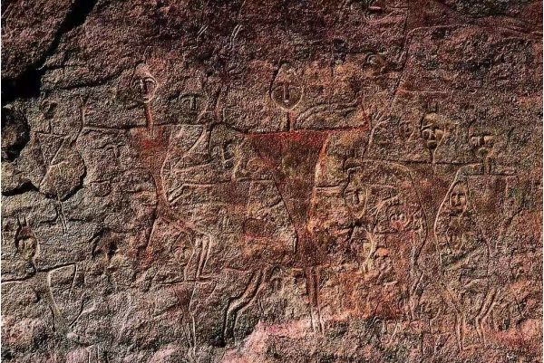 康家石門子巖畫是一幅國內(nèi)及世界上罕見的生殖崇拜巖畫。位于新疆昌吉州 呼圖壁縣的天山腹地, 兩條山溪匯流處的西北岸的新第三紀(jì)的粉砂巖壁上。這處巖畫經(jīng)有關(guān)專家論證定為距今三千年的塞人遺存。據(jù)認(rèn)為巖刻完成于原始社會后期父系氏族社會階段。是研究新疆原始社會的珍貴資料。