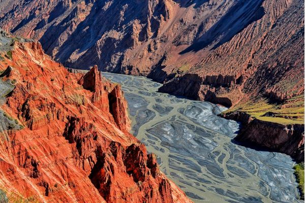 河水沖出天山后,切割獨山子西南方向傾斜平原形成的神奇風(fēng)光峽谷,峽谷兩岸的階地歷歷在目,至少可分9級,階地面上是荒漠草原,生長著蒿類、針茅等。在獨山子境內(nèi)奎屯河流經(jīng)獨山子大峽谷之中峽谷近南北走向,峽谷古幣懸崖陡峭,谷底流水時分時合,谷肩地面是荒漠草原,站在谷肩處遙望峽谷,呈現(xiàn)在眼前的是一幅典型的大峽谷景象。 天山雪水及雨水流下來經(jīng)過這里的土壤形成的沖積溝壑,在谷壁雕鑿出這些奇特景觀。峽谷是從山腳下開始,在草原上形成層次分明土壤層。但顏色主要還是以灰色、黑色為主。 峽谷的雪水很大,但是經(jīng)過這些土壤的時候,攜帶著泥沙水變得很混濁。