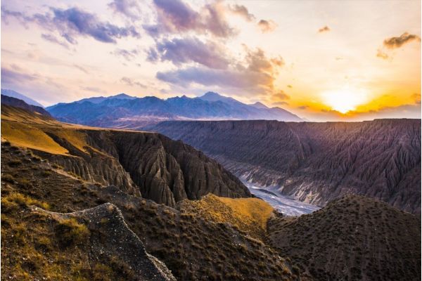 闊克蘇大峽谷發(fā)源于天山山脈中部,由億萬年來沉積的巖層隨地質(zhì)運動和天山雪融水交相作用而形成,位于新疆伊犁八卦城特克斯縣南部。