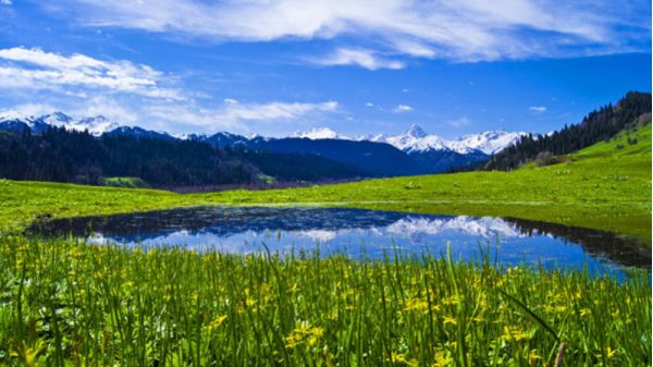 唐布拉草原得名于阿吾拉勒山北坡唐布拉溝東側(cè)有幾處突兀的巖石,因巖石酷似玉璽、印章而得名。唐布拉草原意即"印章"。唐布拉草原景點眾多,據(jù)說有113條溝,每條溝都有各自的特色。流泉瀑、溪水淙淙;奇特的阿爾斯郎石林,壯觀的草原落日;冰峰雪嶺倒映在靜寂幽深的高山湖泊之中。溫?zé)崆逅臏厝?,藍(lán)藍(lán)的天,綠茵茵的草坂,每時每刻給人以美的享受。