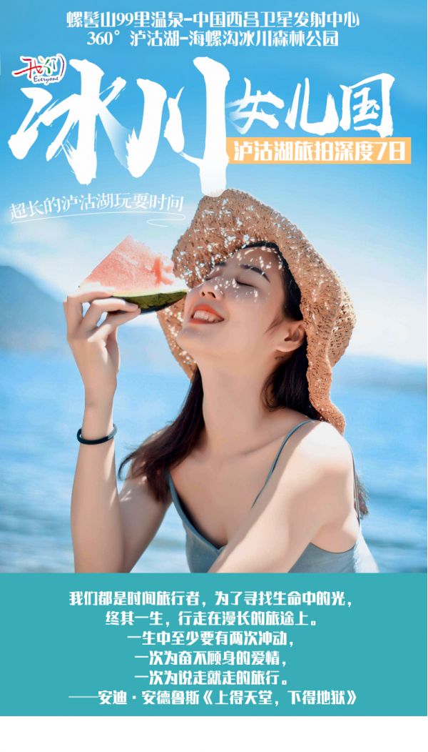 瀘沽湖+海螺溝冰川森林公園+西昌衛(wèi)星發(fā)射基地+螺髻山99里溫泉+360°環(huán)湖+走婚橋旅拍+親愛(ài)的客棧+賞水性楊花+女神灣日落+瀘沽湖