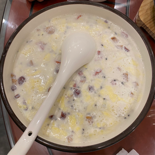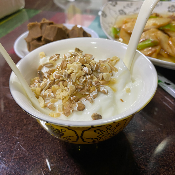 不過(guò)空氣總算清新,游覽結(jié)束,回到住處。帶著團(tuán)里的叔叔阿姨們?nèi)ァ半]源小灶私房菜”吃飯。當(dāng)?shù)厝撕芏?,等上菜半小時(shí)有余,砂鍋豆腐和牛奶雞蛋醪糟不錯(cuò)~紅油實(shí)在吃不慣,無(wú)奈接下來(lái)幾天川菜口味居多。
