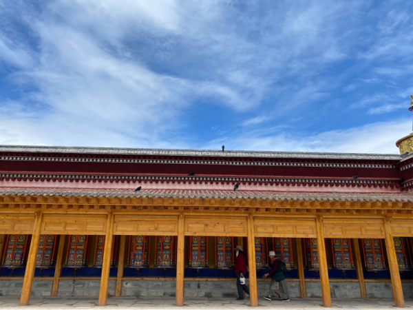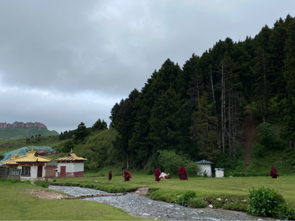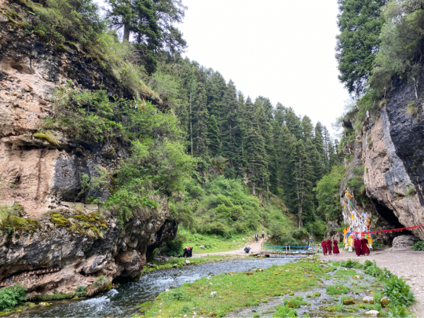因?yàn)楹筮呌懈蟮睦防闼?,所以不具體介紹了。相較而言,郎木寺可以更好地觀察僧人的生活,小僧人們打羽毛球、放風(fēng)箏、修房子干啥的。拉卜楞寺建筑更宏大,管理更規(guī)范,這方面看不到。這邊還有個(gè)峽谷,但是過(guò)于濕滑,就沒(méi)走了。轉(zhuǎn)經(jīng)筒出口的門(mén)有點(diǎn)低,頭頂撞了一個(gè)包,寧波爺爺說(shuō)是撞大運(yùn)了。