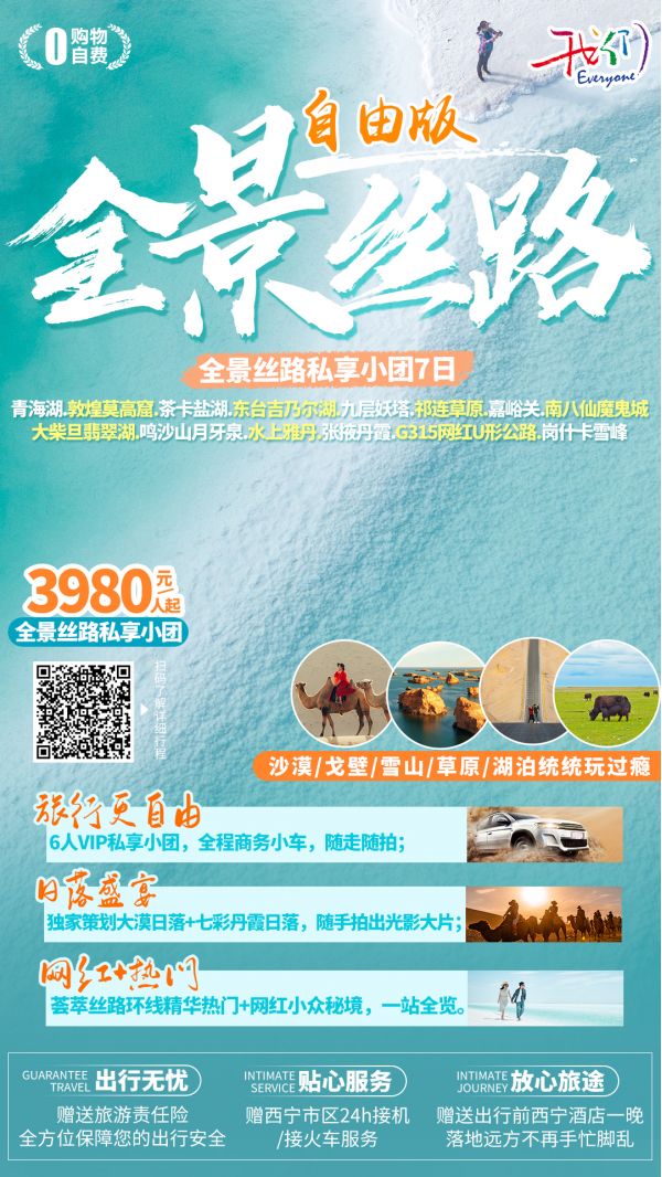 青海湖.茶卡鹽湖.莫高窟.大柴旦翡翠湖.張掖七彩丹霞.鳴沙山月牙泉.嘉峪關(guān).九層妖塔石油小鎮(zhèn) 經(jīng)典絲路