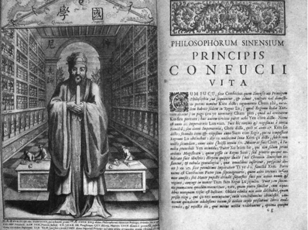 "Confucius"本是拉丁文,后來(lái)被用至英文。16世紀(jì),歐洲天主教耶穌會(huì)傳教士前往遙遠(yuǎn)的東方,踏入明朝的國(guó)土,向中國(guó)人傳教。他們驚訝發(fā)現(xiàn)當(dāng)時(shí)的中國(guó)人,上至達(dá)官貴人、下至受過(guò)一些教育的人,都會(huì)信奉一位2000多年“哲學(xué)家”的教誨,并把他的教誨運(yùn)用到治國(guó)安邦和日常生活中。