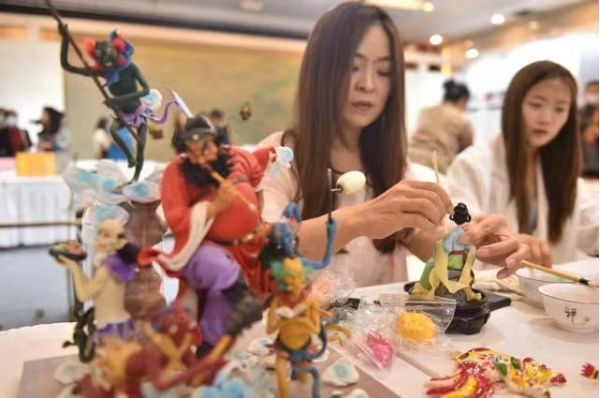在現(xiàn)場,琳瑯滿目的非遺手造呈現(xiàn)在我們面前,有現(xiàn)場雕刻的東昌葫蘆讓外國友人大呼精彩,也有精心雕刻的木版年畫引人好奇,還有東昌毛筆、剪紙、面塑等多種非遺文化進行展示。