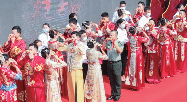 8月4日,農(nóng)歷七月初七,是我國傳統(tǒng)節(jié)日七夕節(jié),一場以“七夕情定東昌湖 文明花開新聊城”為主題的中式集體婚禮在東昌湖畔舉行,10對新人用隆重?zé)崃摇⒑啒銣剀暗募w婚禮,升華了他們的美好愛情。此次集體婚禮由山東省婦聯(lián)指導(dǎo),聊城市婦聯(lián)、東昌府區(qū)委區(qū)政府、東昌府區(qū)婦聯(lián)主辦。