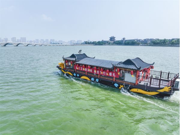 東昌湖畔綠意盎然,風(fēng)荷映水,10對新人在親朋好友的祝福中,攜手走上紅毯。他們中既有教書育人的園丁,也有守護人們健康的白衣天使,有自由創(chuàng)業(yè)的時代青年,也有保家衛(wèi)國的軍人,他們爭做文明新風(fēng)的參與者、移風(fēng)易俗的倡導(dǎo)者。“希望能用我們的行動向廣大青年和家庭發(fā)出倡議,踐行文明新風(fēng)尚,勤儉節(jié)約辦婚禮。”新人劉超和劉顏如說。