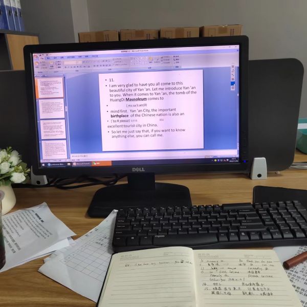 上午9:00左右,劉老師來(lái)到了實(shí)訓(xùn)室,開(kāi)始給李鑫諾通英語(yǔ)。因?yàn)闆](méi)有提前放好PPT,劉老師為此有點(diǎn)生氣。我們被教導(dǎo)了一頓。心服口服。