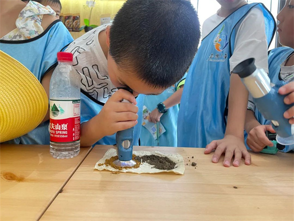 蘇坪村古兒壩是市中區(qū)遠(yuǎn)近聞名的香蔥種植基地。同學(xué)們在基地的香蔥地里,學(xué)習(xí)了如何栽種小蔥。在香蔥文化博物館,聽工作人員介紹了香蔥的種植歷史、用途、營養(yǎng)價(jià)值等知識點(diǎn),并用顯微鏡觀察了普通土壤和種植香蔥的土壤有什么區(qū)別。還進(jìn)行了撈魚、寫信等有趣的活動。豐富的活動內(nèi)容讓孩子們對香蔥種植產(chǎn)生了濃的興趣,也在勞動實(shí)踐中收獲了許多快樂。