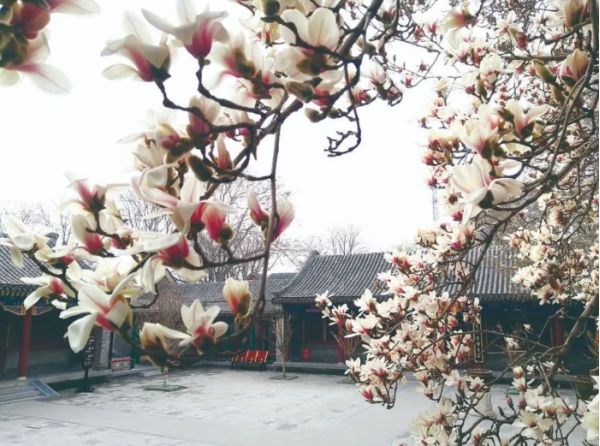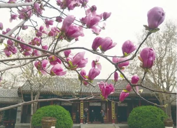 古城飛花春來早,踏青賞花正當時。在紅墻碧瓦的映襯下,正定榮國府內(nèi)一枝枝柳綠花紅竟顯得如此脫俗,從中品出千年的韻味。