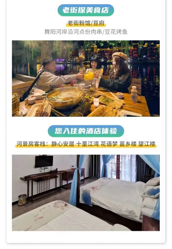 1.最A保證:保證入住鎮(zhèn)遠古鎮(zhèn)景區(qū),尊享臨河河景房,不出房間即可欣賞舞陽河夜景。