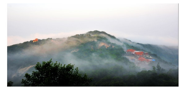 清源山絕頂稱為中峰,與東峰、左峰鼎足而立,是為舊泉州十景之首“清源鼎峙”。舊志稱“行家謂之三臺”,故中峰亦稱中臺。中峰巍然峭拔,凌空獨立,地位清高,四望無余。明代泉州著名理學(xué)家蔡清稱贊曰:“一登第一山,自覺眾山小?!敝蟹迕谰霸谟跓熢谱兓?。晴日晨昏,常有嵐氣縹緲,瑞煙繚繞,如絲如帶,若隱若現(xiàn)。原半嶺寺有錄“詩圣”杜甫祖父杜審言之詩聯(lián)曰:“半嶺通佳氣,中峰繞瑞煙?!贝合闹荆慨斏接暧麃恚蝮E雨初歇,則濃霧彌漫,密云覆蓋,三峰盡隱入云天。人行此間,如游仙境,隔斷塵寰。遠近景物虛虛實實,如夢如幻。