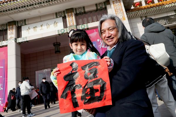 大年初一,中國美術館迎來大批觀眾。當天下午兩點,美術館前廣場熱鬧起來,喜氣洋洋的中國美術館送福賀新春活動在這里舉辦。