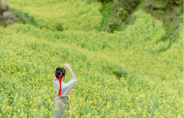 洋洋灑灑盛開的油菜花,偎依著靜謐的蓮花湖,給人的感覺就像旅游到青海湖畔。