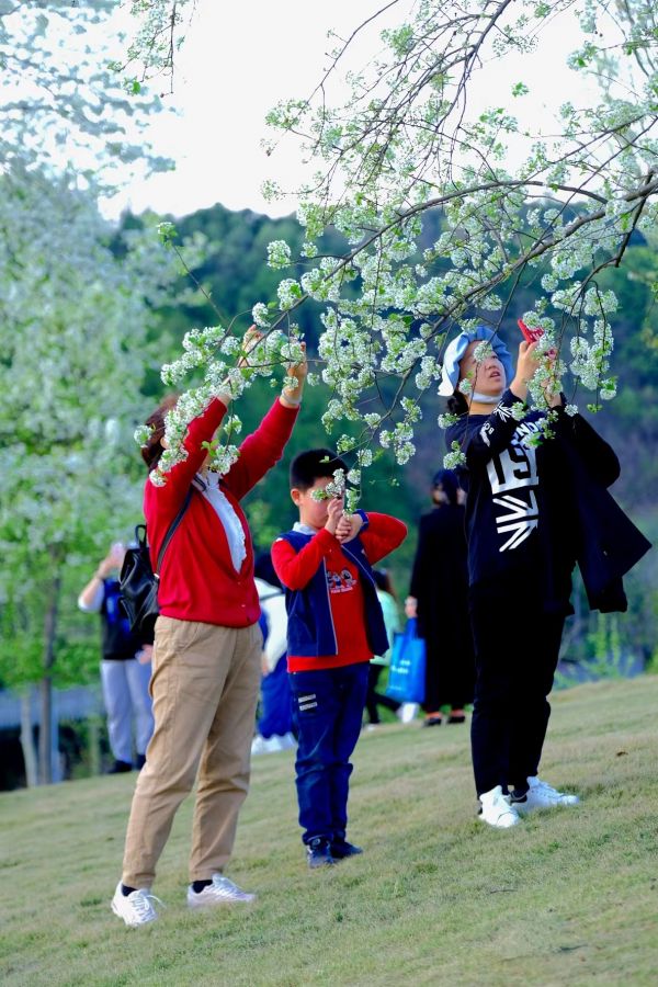 在南寧青秀山景區(qū),潔白的豆梨如云似雪,吸引了不少游客前來(lái)踏春?!吧惩叩峡?!我現(xiàn)在在南寧的青秀山??纯次液竺婺且淮笃咨幕ǎ嗝利?!”來(lái)自泰國(guó)的電商主播卓冰月正拿著手機(jī)直播。在她的鏡頭里,豆梨、金魚(yú)草、蘭花、郁金香等五彩繽紛。