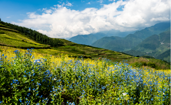 最近,在越西發(fā)現(xiàn)了一處絕美的“仙境”,藍紫色的野花繁星似地密布在,沒過膝蓋的綠草之中成群的蝴蝶在其間翩翩起舞。