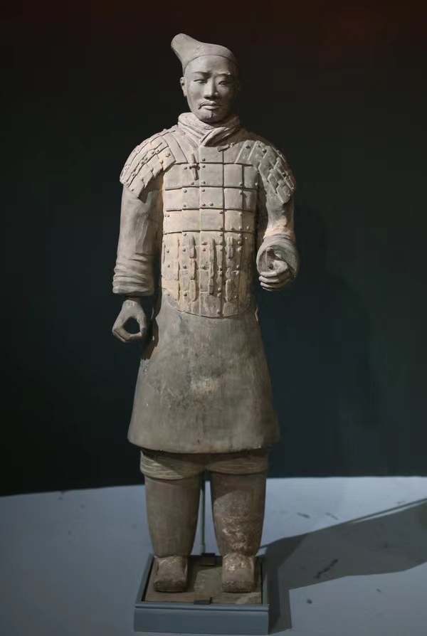兵馬俑的塑造,基本上以現(xiàn)實生活為基礎,手法細膩、明快。每個陶俑的裝束、神態(tài)都不一樣。人物的發(fā)式就有許多種,手勢也各不相同,面部的表情更是各有差異。從他們的裝束、神情和手勢就可以判斷出是官還是兵,是步兵還是騎兵??傮w而言,所有的秦俑面容中都流露出秦人獨有的威嚴與從容,具有鮮明的個性和強烈的時代特征。