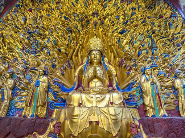 牧牛道場的石刻非常生活化,看似在講牧牛人和牛之間的互動變化,實則是用生活化的方式傳達出佛教禪觀的修正過程;圓覺洞是修煉成佛的最后一步,體現(xiàn)的是佛祖問心的過程,這個洞深12米,有三絕:采光、排水以及鑿石,進去的時候一片黑暗,后來慢慢變亮,就是這個洞采光的特點,也給人一種心靈得到洗滌逐漸變得通透的感覺;最令人震撼的石刻就是千手觀音像了,經(jīng)過多年的修復(fù),千手觀音終于在世人面前呈現(xiàn)出她最完美和輝宏的姿態(tài),身披金縷,面容莊嚴,據(jù)修復(fù)數(shù)據(jù)顯示此處千手觀音像共有1008只手,每只手的姿態(tài)和手中的法器無一重復(fù),是名副其實的千手觀音,在每只手的掌中都有一只眼睛,也是一處通風(fēng)口,既有藝術(shù)性又能保證石刻不被風(fēng)化,千年而不倒。