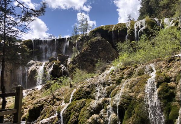黃山歸來不看云,九寨歸來不看水,九寨山水,天然原始,四季景色變幻無窮,尤其是秋季,沿湖連綿數(shù)十里彩林美不勝收。九寨溝的精靈是水,湖、泉、河、灘連綴一體,千顏萬色,高低錯落的群瀑高唱低吟,大大小小的群海碧藍澄澈,水中倒映紅葉、綠樹、雪峰、藍天,變幻無窮;水在樹間流,樹在水中長,花樹開在水中央