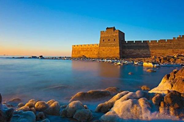 山海關位于秦皇島市山海關區(qū),景區(qū)內(nèi)名勝古跡薈萃、風光旖旎、氣候宜人,區(qū)內(nèi)有開發(fā)和觀賞價值的名勝古跡達90多處,有老龍頭、孟姜女廟、角山、天下第一關、長壽山、燕塞湖六大風景區(qū),是著名的歷史文化古城和旅游避暑勝地。其中,老龍頭景區(qū)總占地面積700畝,由入海石城、海神廟、靖鹵臺、南???、澄海樓、寧海城和濱海長城七部分組成。澄海樓是老龍頭的制高點,是觀海的勝地。地址:河北省秦皇島市山海關區(qū)