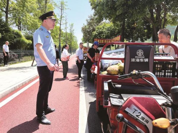 5月1日,長沙縣星沙街道組織星沙行政執(zhí)法隊(duì)隊(duì)員在維護(hù)轄區(qū)內(nèi)秩序,對松雅湖附近路邊商販進(jìn)行勸導(dǎo)。
