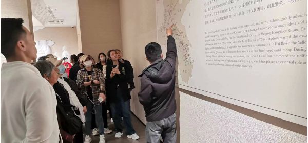 首先,講解組的各位成員首先來到的是中國運河文化博物館,跟隨旅行團一起傾聽運河博物館的文化,并從中學(xué)習(xí)講解員的語言、動作、手勢等。講解員解說時擁有強大的語言駕馭能力,能夠?qū)⒊橄蟮膬?nèi)容具體化,通過一個個的動人的運河故事,引起我們的興趣。