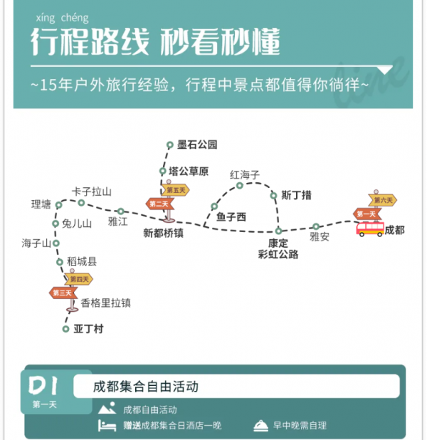 稻城亞丁.新都橋.理塘.墨石公園.塔公草原.康定彩虹公路.瑪尼河谷.海子山.斯丁措.魚子西.天路十八彎.川藏祈福第一墻 2-6人小團(tuán)6日