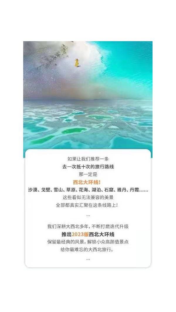 請(qǐng)對(duì)應(yīng)使用我方玩聚甘青夢(mèng)境小團(tuán)7日行程,因使用其它行程造成的投訴,責(zé)任自負(fù);請(qǐng)仔細(xì)閱讀以上行程文檔,同意并保證遵守我方安排,以免為您帶來(lái)不必要的麻煩;如產(chǎn)生合同糾紛或人身意外事故,按《中華人民共和國(guó)合同法》、《道路交通法》、《保險(xiǎn)賠償條例》裁定;本行程作為旅游合同附頁(yè)與旅游合同同等法律效力。
