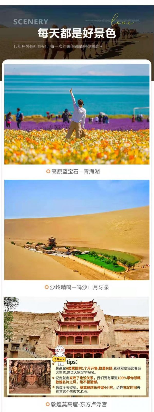 (1)敦煌《又見敦煌》演出,旅游淡季298元/人,旺季368元/人起;