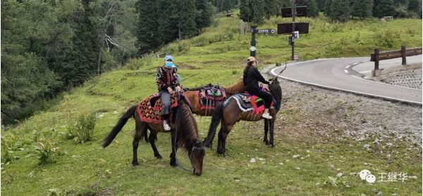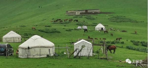 有一個在此休息的導(dǎo)游告訴我們山頂上漂亮可以到山頂上去放無人機(jī),。到山頂有電瓶車票價120。我們6個人包了一輛車,司機(jī)叫老張,中等個風(fēng)吹日曬的黑臉布滿了皺褶。他很熱情主動的介紹山上的情況,開車的時候主動問我們新疆第一大民族是什么民族,我們說是哈薩克,他在前面開著車說:錯。是維族,他又問第二大民族是什么,我們說哈薩克,他得意的說:還是錯,是漢族。他又問第三大民族是什么,我們說哈薩克,他說對了。他又問,你知道那拉提是什么意思,我們說不知道,他說哈薩克語是太陽升起的地方。老張接著自我介紹他也是一個漢族,今年59歲,家在100公里外的公留縣,老婆是一個教師,很漂亮。開私家車來這上班,宿舍就在山下公司宿舍。和山上氈房里的哈薩克牧民都非常熟悉。言語之間露出一些自豪。