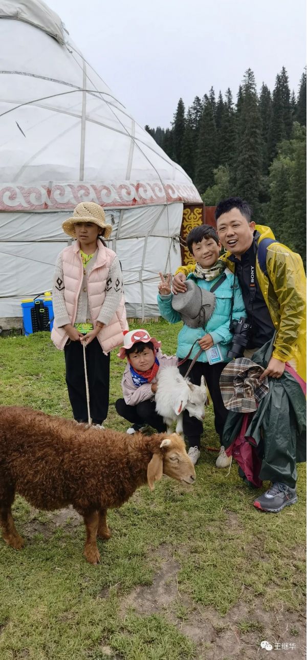 我們幾個人給他照相,我們領(lǐng)隊劉寶平和兩個小孩親密交談,通過交談,知道大的小姑娘一個叫阿依孜爾,一問小男孩竟然也是姑娘,叫阿依格爾。兩個小姑娘非??蓯?。阿依孜爾向前面一指說這是我媽媽。我們順著她指的方向一看。