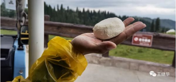 我們吃完羊肉串,每人又要了一杯鮮牛奶然后去山頂啟動無人機(jī)放飛。這時候阿依孜爾氣喘吁吁的趕過來,遞給劉總一個白色的團(tuán)子。說這是奶酪送給你的。好淳樸的孩子。
