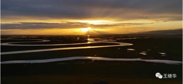 乘區(qū)間車進(jìn)入景區(qū),大家直奔最好的景點(diǎn)。雨過天晴霞光萬道,細(xì)霧中的遠(yuǎn)山露出淡淡的藍(lán)色,廣袤無垠的綠地一望無際,沁人心脾的野花鋪天蓋地九曲十八彎的河流蜿蜒曲折,映射出多個太陽。我們一行立即受到感染激動不已,拿出飛機(jī)就放飛,迅速升天,不到十分鐘過來幾個保安說這里禁飛,命令我們降落。我們馬上降落??扇思覄倓傠x開,我們又有人飛起。