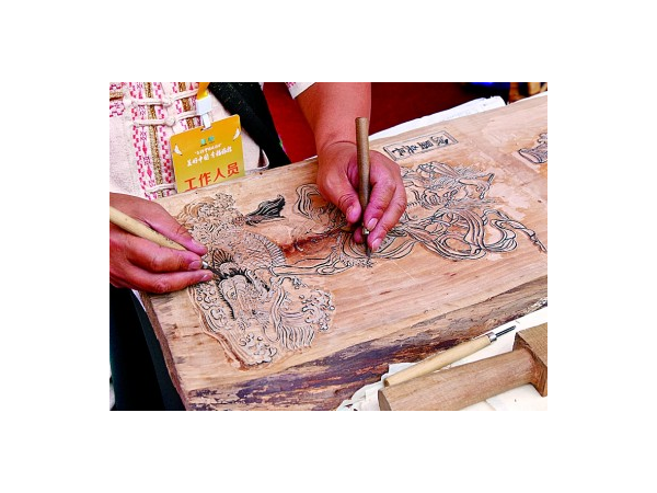 “您在雕刻什么?我能體驗一下嗎?”“把印版放平,刷好顏料,再把紙端正地放上去……”騰沖農(nóng)民畫傳承人賈明安一邊帶游客體驗印甲馬,一邊介紹:“甲馬在古代是用來祈福祭祀的,后來逐漸成為雕版藝術(shù)。騰沖有悠久的木刻雕版印刷歷史。”他指著一旁未雕刻完的作品說,“喏,完成這樣一幅作品要五六天。木頭多選用結(jié)構(gòu)細(xì)膩、木質(zhì)良好的梨木,這樣才能雕刻出精細(xì)的圖案。”你一言我一語的對話間,游客在賈明安的幫助下既體驗到了印甲馬的過程,又對騰沖甲馬這項非遺項目有了更多了解。