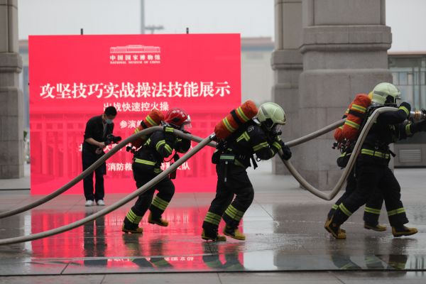 本次演練在國(guó)博黨委領(lǐng)導(dǎo)下,聯(lián)合北京市公安局天安門地區(qū)分局、北京市天安門地區(qū)消防救援支隊(duì)、北京市東城區(qū)消防救援支隊(duì)、北京市西城區(qū)消防救援支隊(duì)、北京市特勤支隊(duì)、武警北京總隊(duì)執(zhí)勤第一支隊(duì)共同實(shí)施。演練通過(guò)刺殺操方陣、安檢應(yīng)急處突能力、一警六員培訓(xùn)成果、攻堅(jiān)技巧實(shí)戰(zhàn)操法技能、展廳滅火疏散演練、滅火救援聯(lián)合訓(xùn)練等科目展示,實(shí)戰(zhàn)模擬了警戒疏散、現(xiàn)場(chǎng)救援、應(yīng)急指揮、部門聯(lián)動(dòng)等環(huán)節(jié),全面檢驗(yàn)了安全保衛(wèi)技能技術(shù)和安全管理科學(xué)規(guī)范水平,有效提升了對(duì)突發(fā)公共安全事件應(yīng)急處置的綜合能力。